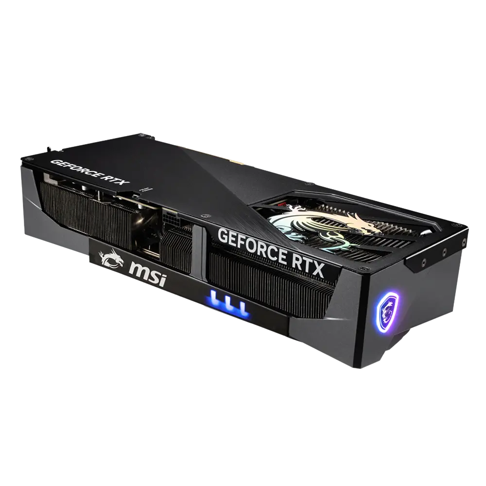 The card features a Dual BIOS switch, allowing you to instantly toggle between “Gaming” mode for full performance and “Silent” mode for quieter operation. The aesthetic is sleek and aggressive, with MSI’s Mystic Light ARGB adding a customizable glow that syncs with your entire rig via MSI Center.