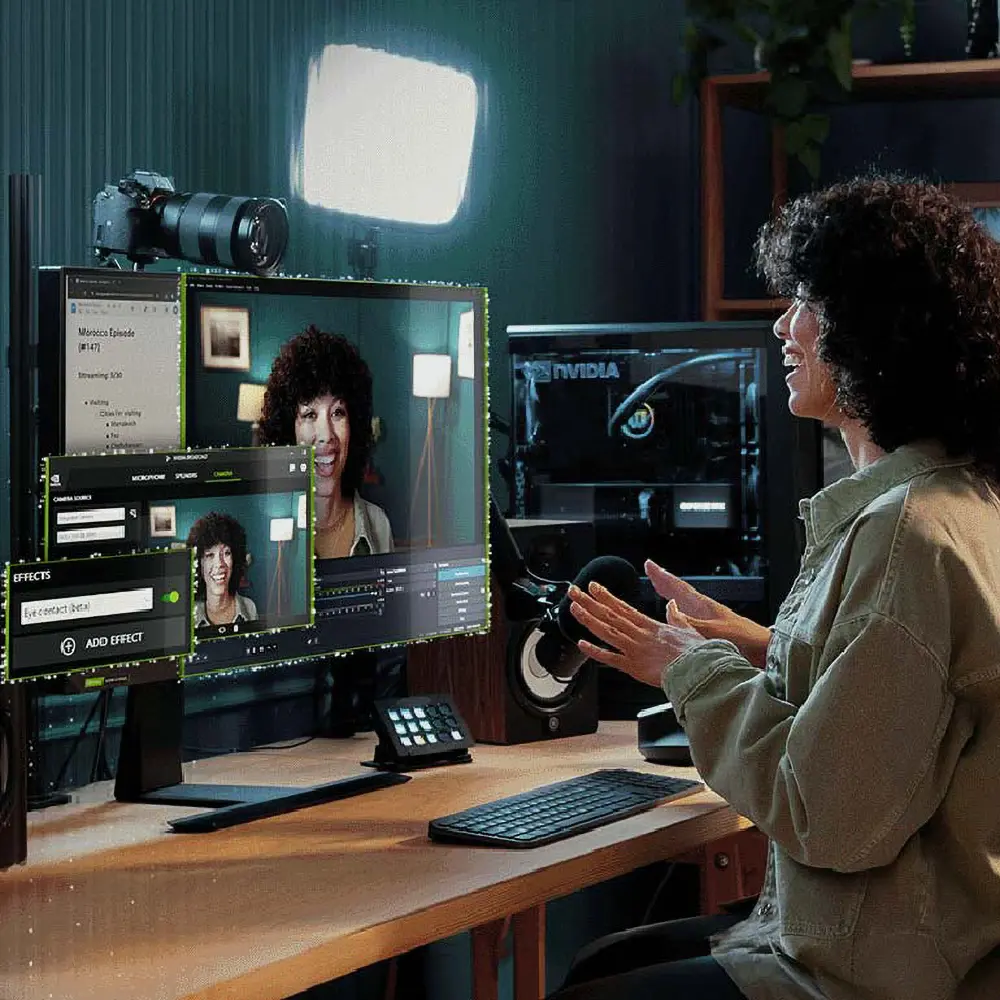 Gamers can expect to dominate any title with DLSS 4 AI Tuning, which utilizes the new Tensor Cores to generate frames with zero loss in image quality. Full Ray Tracing Neural Rendering brings cinematic lighting to life, making reflections and shadows indistinguishable from reality.